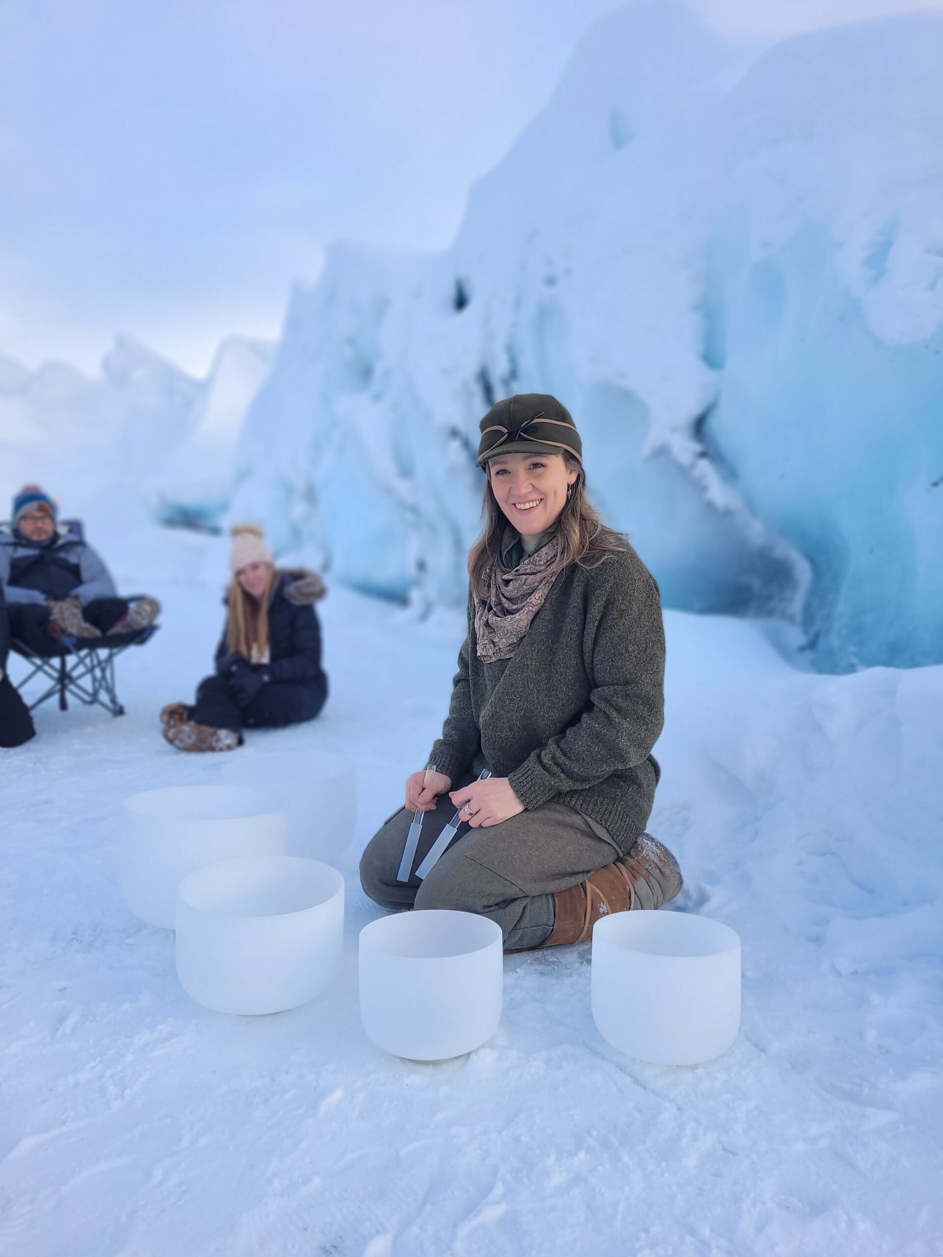 Or, for the inner adventure seeker, “chill out” to a sound bath. Allow the ethereal tones to soothe, anchor and align your awareness to the present moment so gently that the deep ice under and around you can gently whisper ancient pearls of wisdom. Frequencies from the crystal singing bowls reverberate off crevasse walls or tend to gently cause tiny shale slides that is completely unlike any studio-based sound bath, and coupled with the sound of organic running water, cracking ice, or wind creates a natural symphony unable to ever be duplicated. Plus, for you science-and-spirituality geeks, this is next level subtle energy work when you realize the glacier, being densely frozen “structured” water, hexagonal in molecular structure, meets the definition of a crystal; the coherent structure of crystals act as amplifiers, so you’re backed by a giant 27 mile-long crystal energetically encouraging you to “flow” and “release” old, stagnant energy. So…hang on!